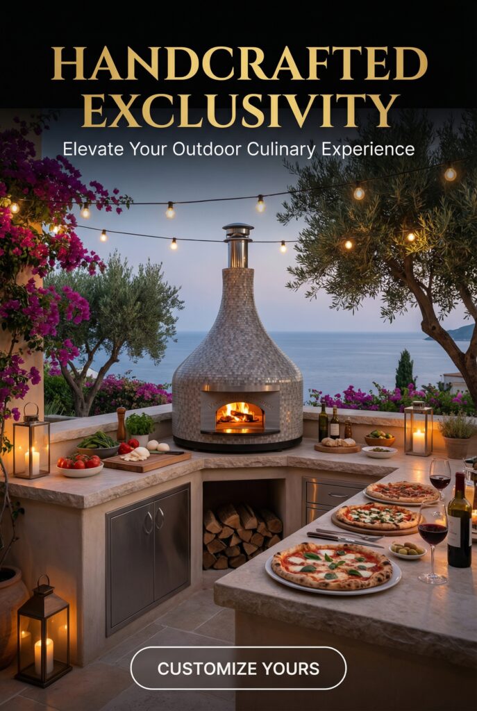 Our Nardona Vesuvio Pizza Oven is our largest and NEWEST model. It is also our most impressive of our pizza ovens. It stands at 100″ including the pipe. This oven has a beautiful glass tile finish and a traditional Naples style center vent. This makes it a stunning addition to any cooking space. And it has our own modern spin making it slightly different than a traditional Napoli style oven which you are going to love. This sets us apart from all the others.